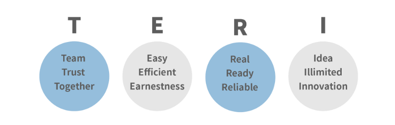 對應了Teri的核心理念:trust (信任)、earnestness (誠摯)、 real (真實)