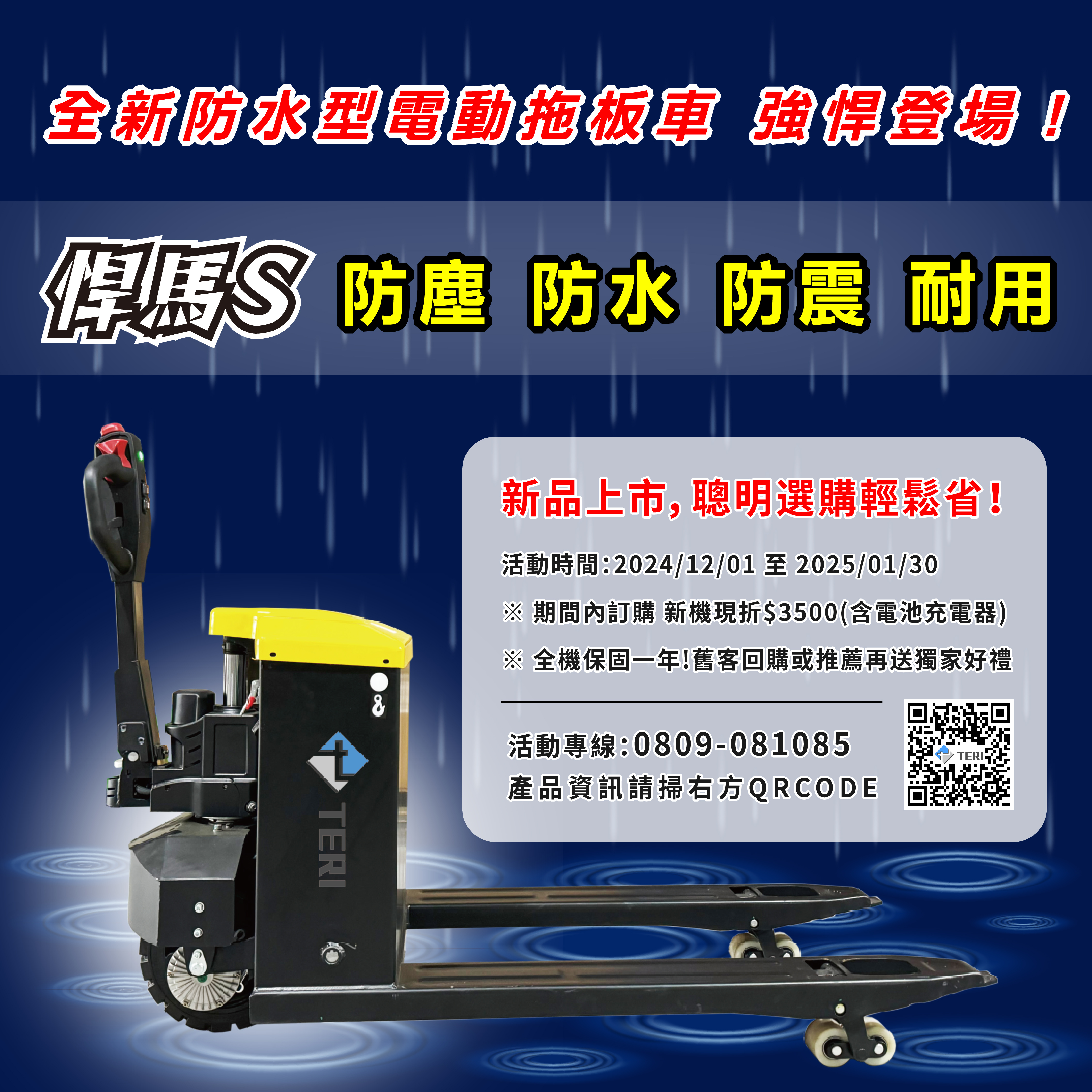 防水新勢力,省錢大加碼! 防水電動拖板車全新上市,聰明選購輕鬆省! 活動時間:2024/12/01 至 2025/01/30 ※ 期間內訂購C3-20/30RPT現折$3500(含電池及充電機)。 ※ 全機保固一年!!! 凡TERI舊客回購或介紹購買再送獨家好禮唷。 [ ↘ 點我看產品介紹 ] [ ↘ 點我取得報價 ] 如欲瞭解更多,歡迎點擊上方圖片連結,或來電洽詢:0809-081085
