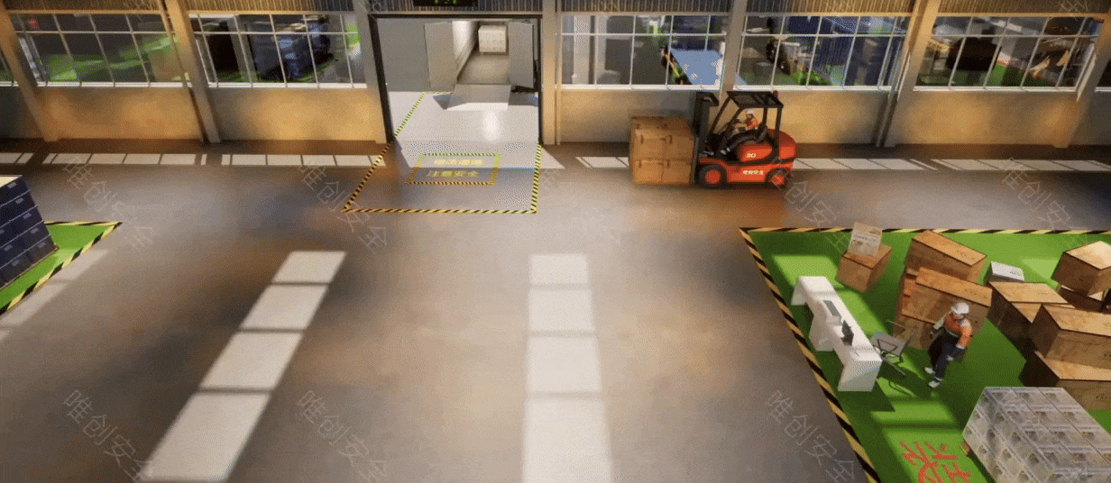 360°防撞預警:同一區域實現堆高機與人員、堆高機與堆高機之間的安全距離報警;